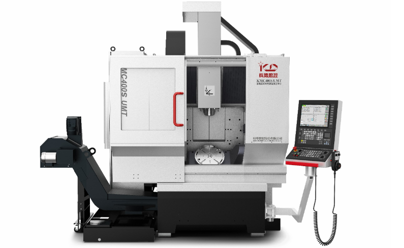 KMC400S UMT五轴立式车铣复合加工中心具有立式加工中心介绍里的全部特点,KMC400S UMT在KMC400S U通用五轴立式加工中心的基础上,增加车削功能,具有铣削和车削两种模式,车削模式下回转工作台的C轴具有最高2000 rpm的转速。这种车铣复合的特殊化设计,减少因传统工序多次装夹造成的时间损耗和精度损失,提高加工效率和加工精度。由于采用主轴移动模式,并且具备高达48m/min,1g加速度的性能指标,相比传统机型具有更高的材料去除率。